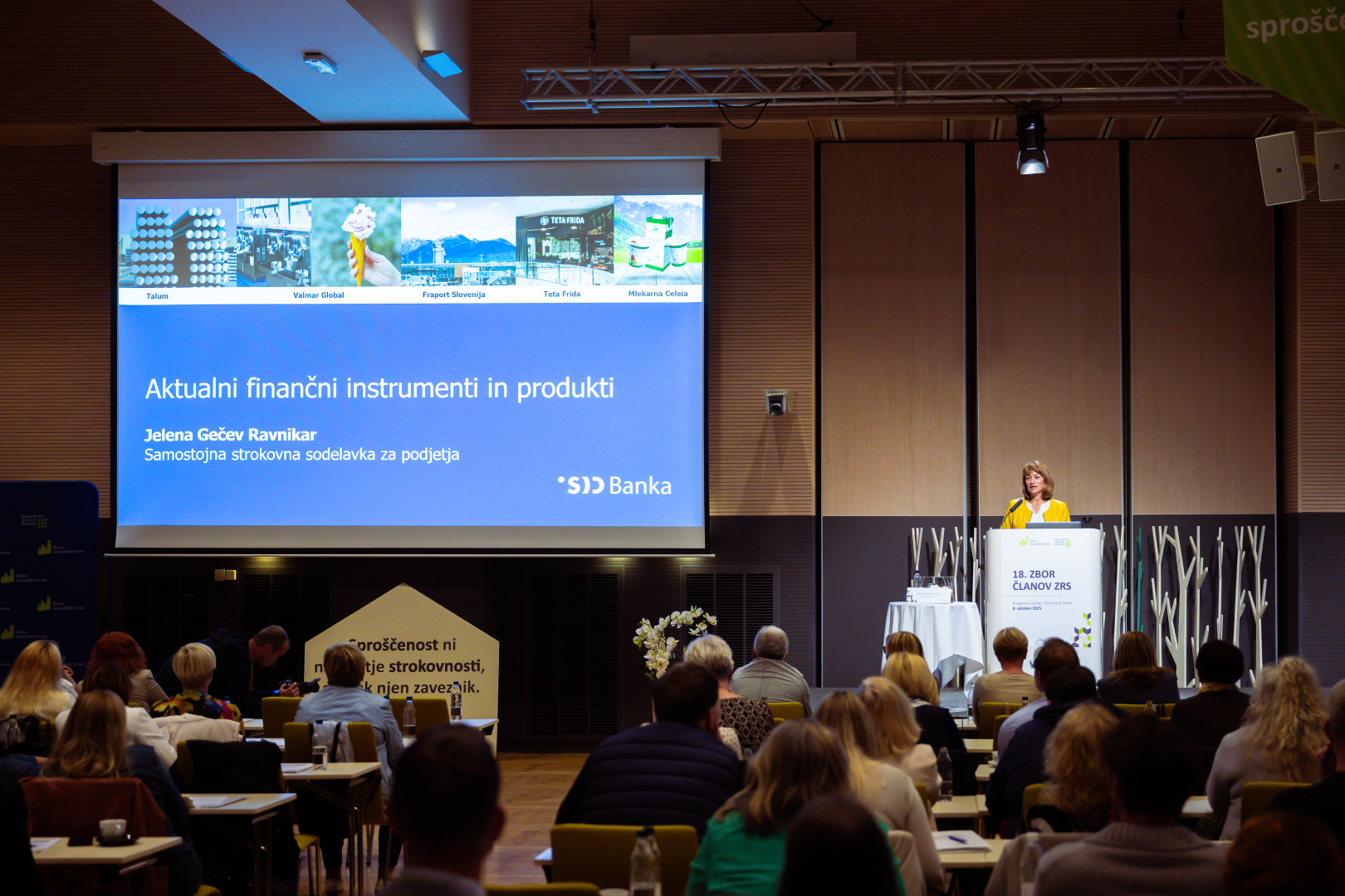 Jelena Gečev Ravnikar, samostojna strokovna sodelavka za podjetja iz SID banke d.d., je v okviru sponzorskega prispevka predstavila možnosti financiranja preko SID banke.