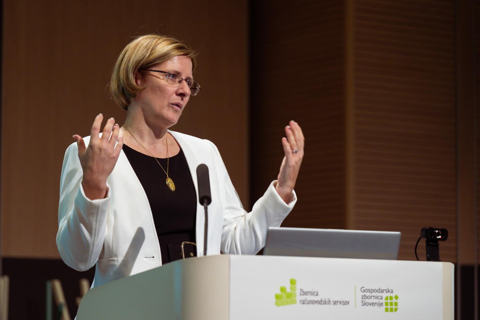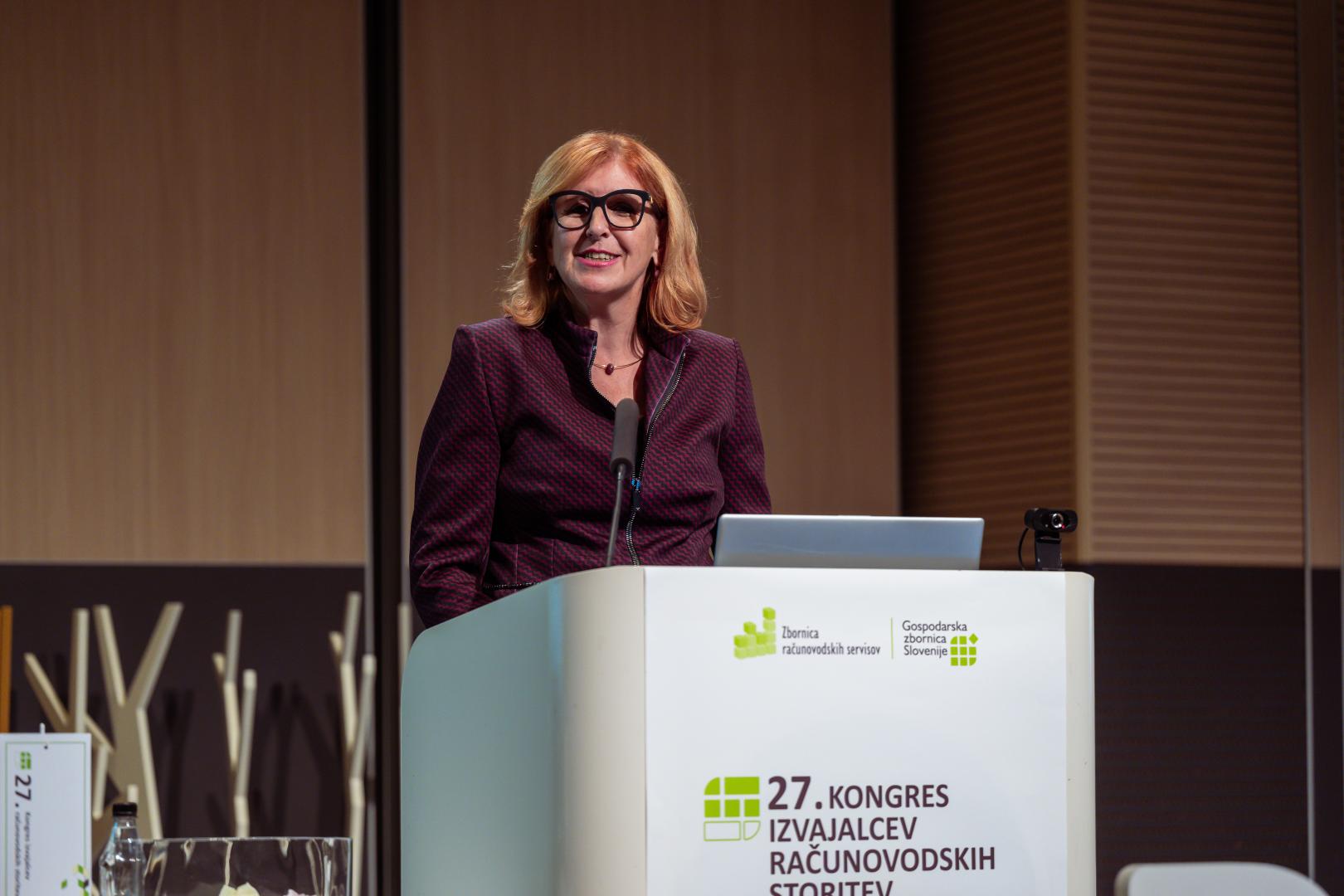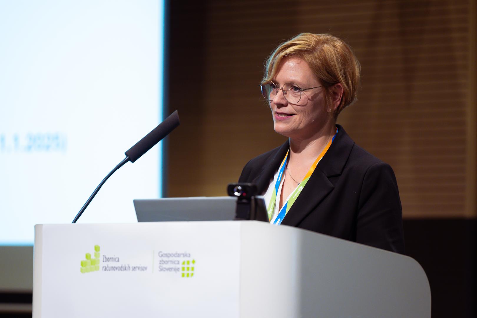 Strokovni del je otvorila mag. Tina Humar, generalna direktorica Direktorata za sistem davčnih, carinskih in drugih javnih prihodkov na Ministrstvu za finance. V svojem predavanju je predstavila najnovejše usmeritve v zakonodaji in aktualne izzive na področju javnih prihodkov.