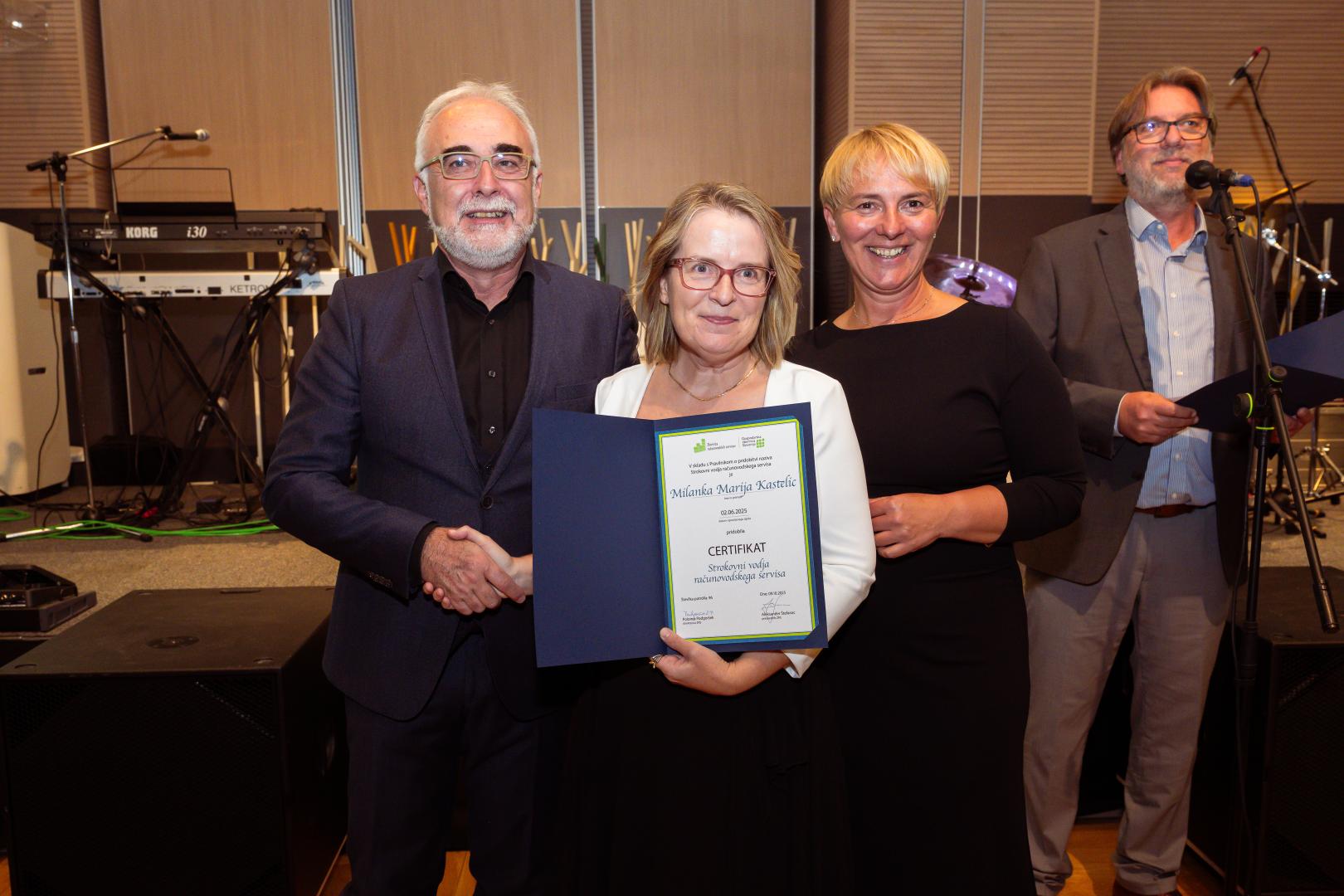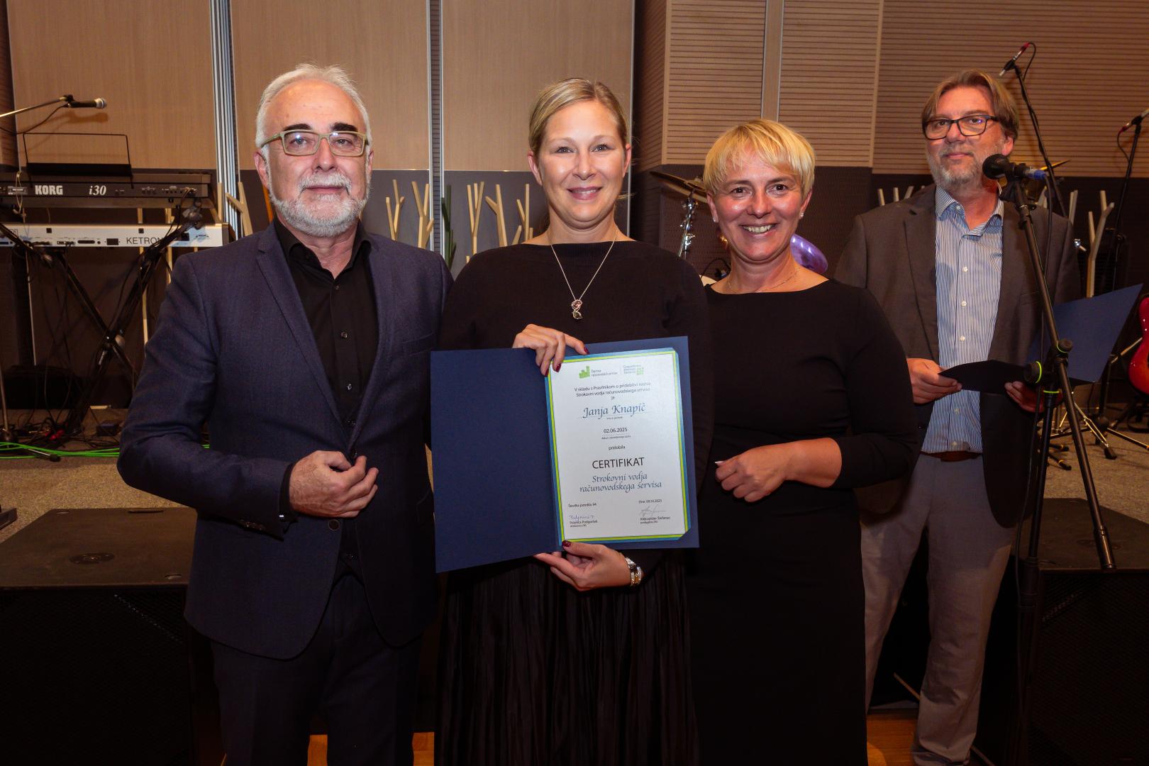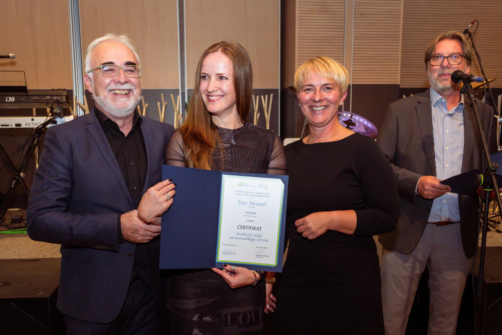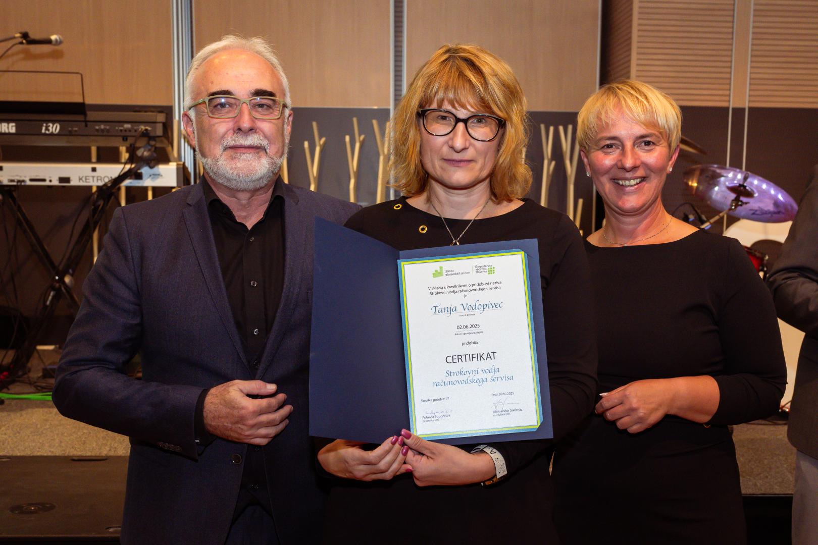 Sledila je svečana podelitev certifikatov novim Strokovnim vodjem računovodskega servisa, ki sta jih izročila Ksenija Prosen, vodja izpitne komisije, in Aleksander Štefanac, predsednik ZRS.