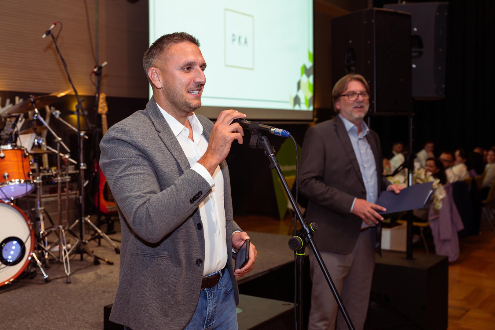 Večer je z iskrivo energijo otvoril moderator Neven Škrokov, ki nas je tudi letos sproščeno popeljal skozi družabni del dogodka.